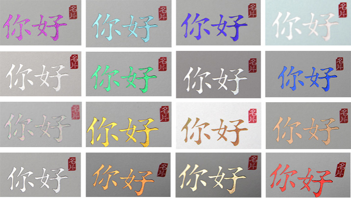 接下来是各烫印纸在名片上的应用案例。楼主知道设计师们最喜欢看的环节来了。带大家看下其实除了烫金烫银之外其实有很多其它金可烫的。烫金带你进入缤纷名片世界。